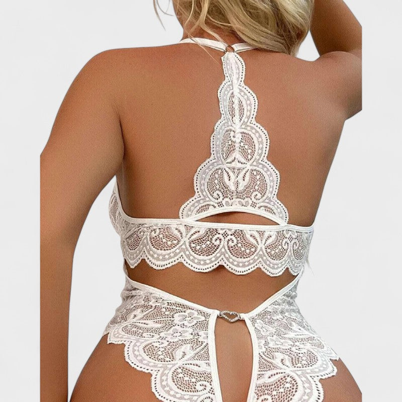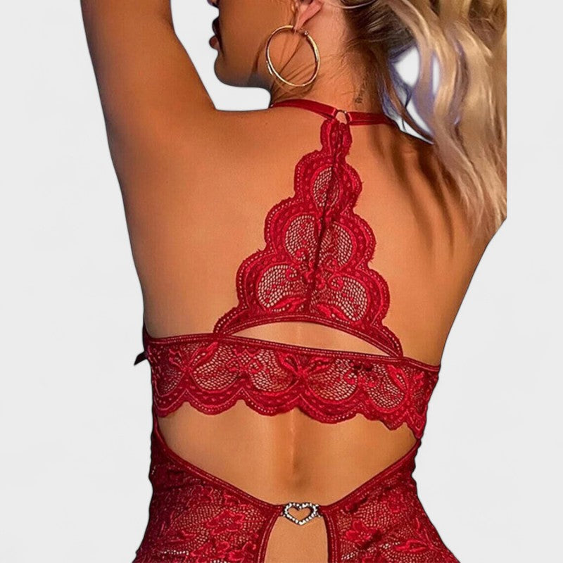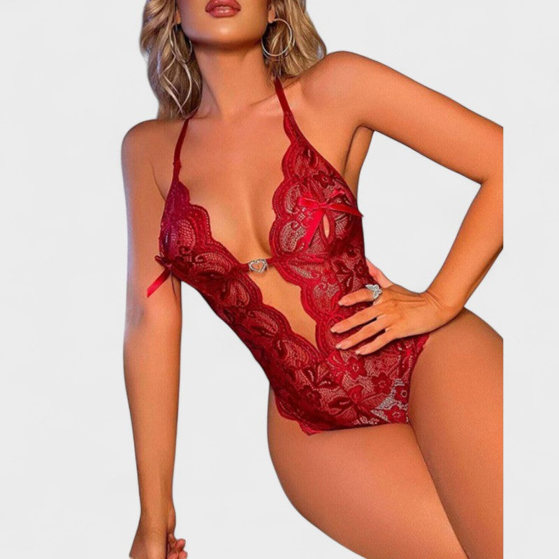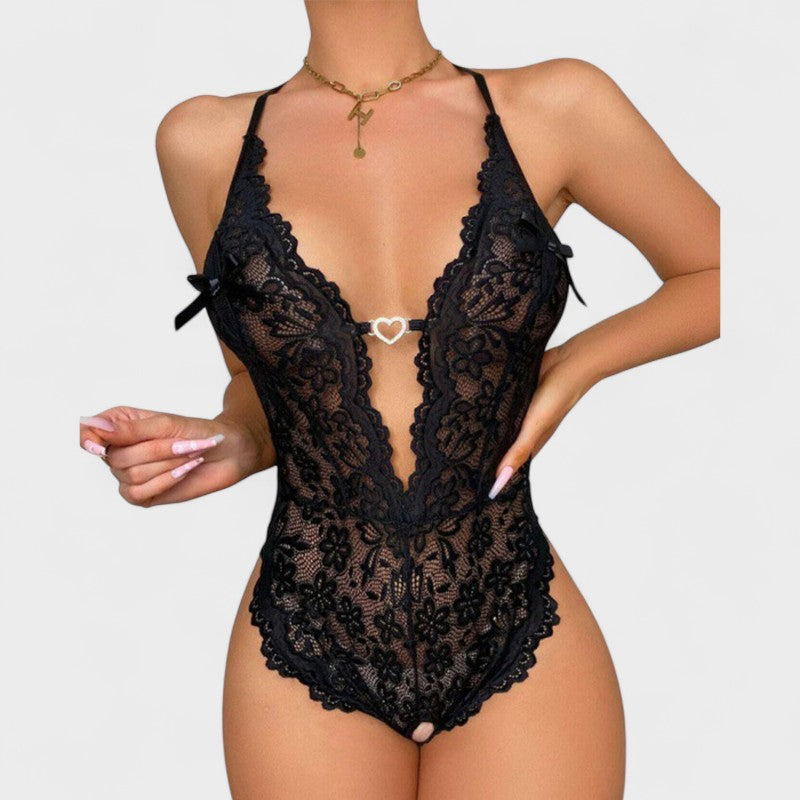 גוף חושני שמקסים עם תחרה עדינה, גזרה נועזת ופרטים משחקיים. החשיפה העמוקה מדגישה את הקווים הנשיים, בעוד שהרצועות הדקות והקשר סביב הצוואר מעניקים לדגם אלגנטיות. קשתות קטנות מסאטן מדגישות את הנופך הרומנטי, מה שהופך את הפריט הזה לבחירה אידיאלית לרגעים אינטימיים.