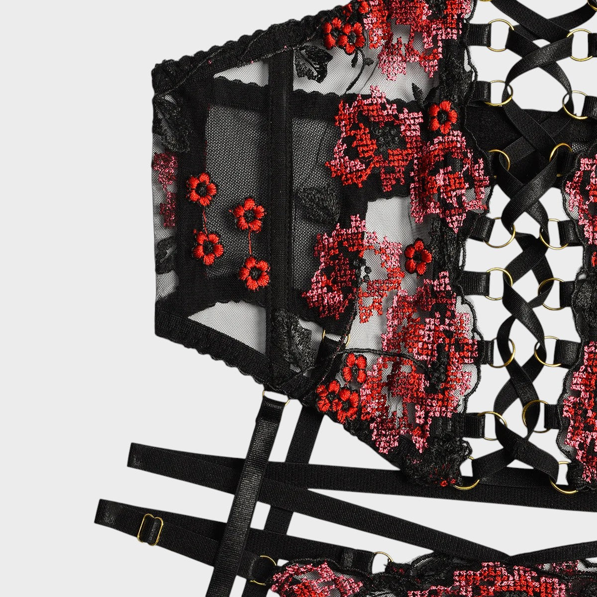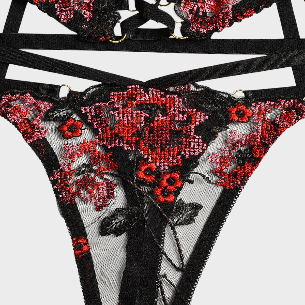 התחתונים התואמים עשויים מאותו חומר תחרה ורשת אלגנטי ומציעים חיתוך מחמיא המדגיש את הקימורים שלך. עם כיסוי מינימלי, הם מדגישים את המראה הסקסי הכללי של הסט, מה שהופך אותם לתחתונים סקסיים לנשים אידיאליים.