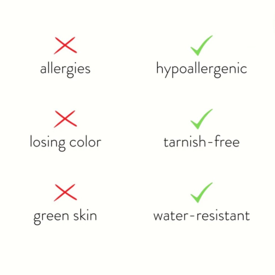 עשויה מפלדת אל חלד עמידה במים, לא תצטרכו לדאוג יותר לאצבעות ירוקות, תכשיטים דוהים או מחומצנים!
