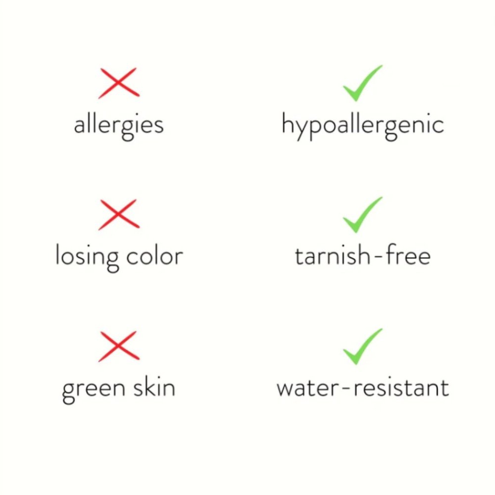 עשויה מפלדת אל חלד עמידה במים, לא תצטרכו לדאוג יותר לאצבעות ירוקות, תכשיטים דוהים או מחמצנים.