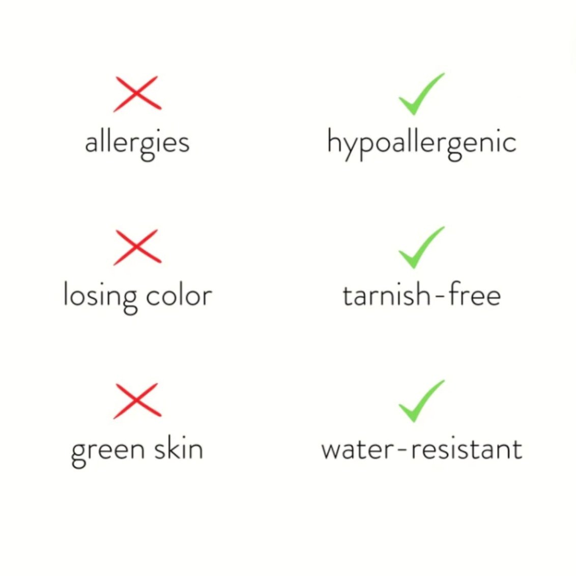 עשויה ממתכת אל חלד עמידה במים, לא תצטרכו לדאוג יותר לגבי דהייה או חמצון של התכשיטים שלכם.